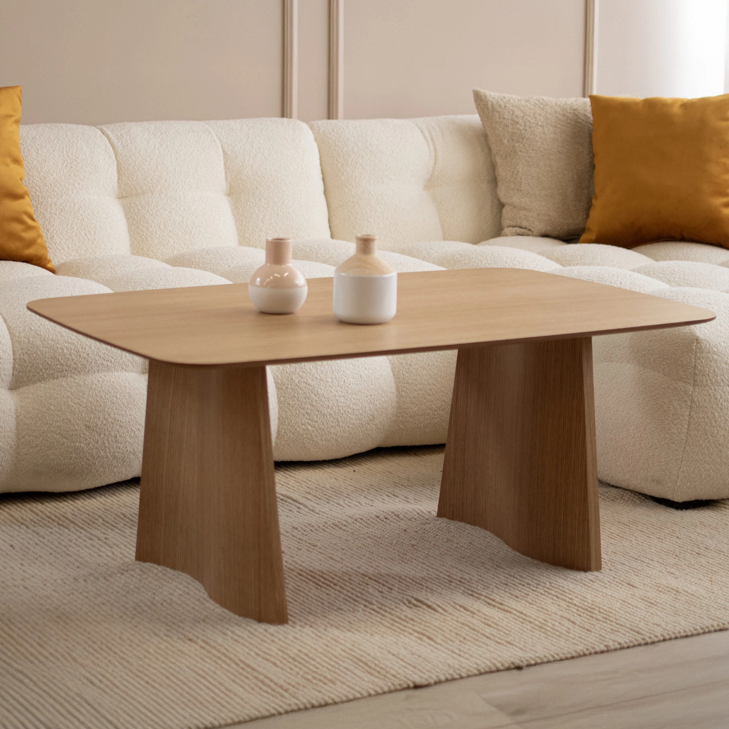 Kao i njegova trpezarijska verzija, „Sfera“ ima drvene noge nepravilnog, talasastog oblika, stvarajući upečatljiv vizuelni efekat i osećaj dinamičnosti. Ploča stola ima zaobljene uglove, što doprinosi mekom i harmoničnom izgledu.