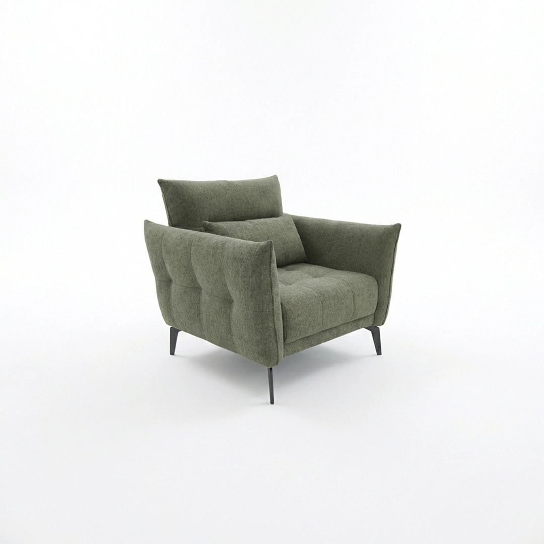 TDF Hana – Elegantna garnitura koja spaja savremenu estetiku i izuzetnu udobnost. Dostupna kao kompletan set (trosed, dvosed i fotelja) ili kao zasebni elementi — prilagodite prostoru onako kako vama odgovara. Crne metalne nožice naglašavaju moderan karakter garniture i harmonično se uklapaju u različite enterijere — od minimalističkih do industrijskih. Veliki izbor tkanina i dezena omogućava vam da garnituru u potpunosti prilagodite svom prostoru i ukusu.