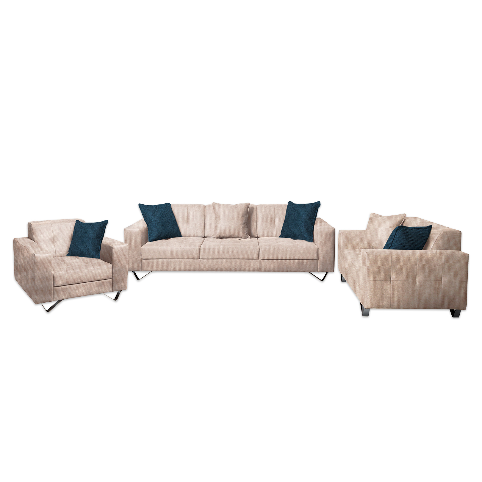 TDF Vitoria – Garnitura modernog dizajna, sa hromiranim metalnim nogarima. Sastoji se iz kompleta trosed, dvosed i fotelja. Postoji mogućnost kupovine zasebnih elemenata, kao i kombinacije boja, dezena… Veoma udobna, sedeći deo sunđer (gustina 30), koja se nalazi na elastičnim gurtnama koje povećavaju os ećaj udobnosti. Veliki izbor materijala. Drvena konstrukcija omogućava čvrstoću i dugotrajnost, a metalni nogari stabilnost.