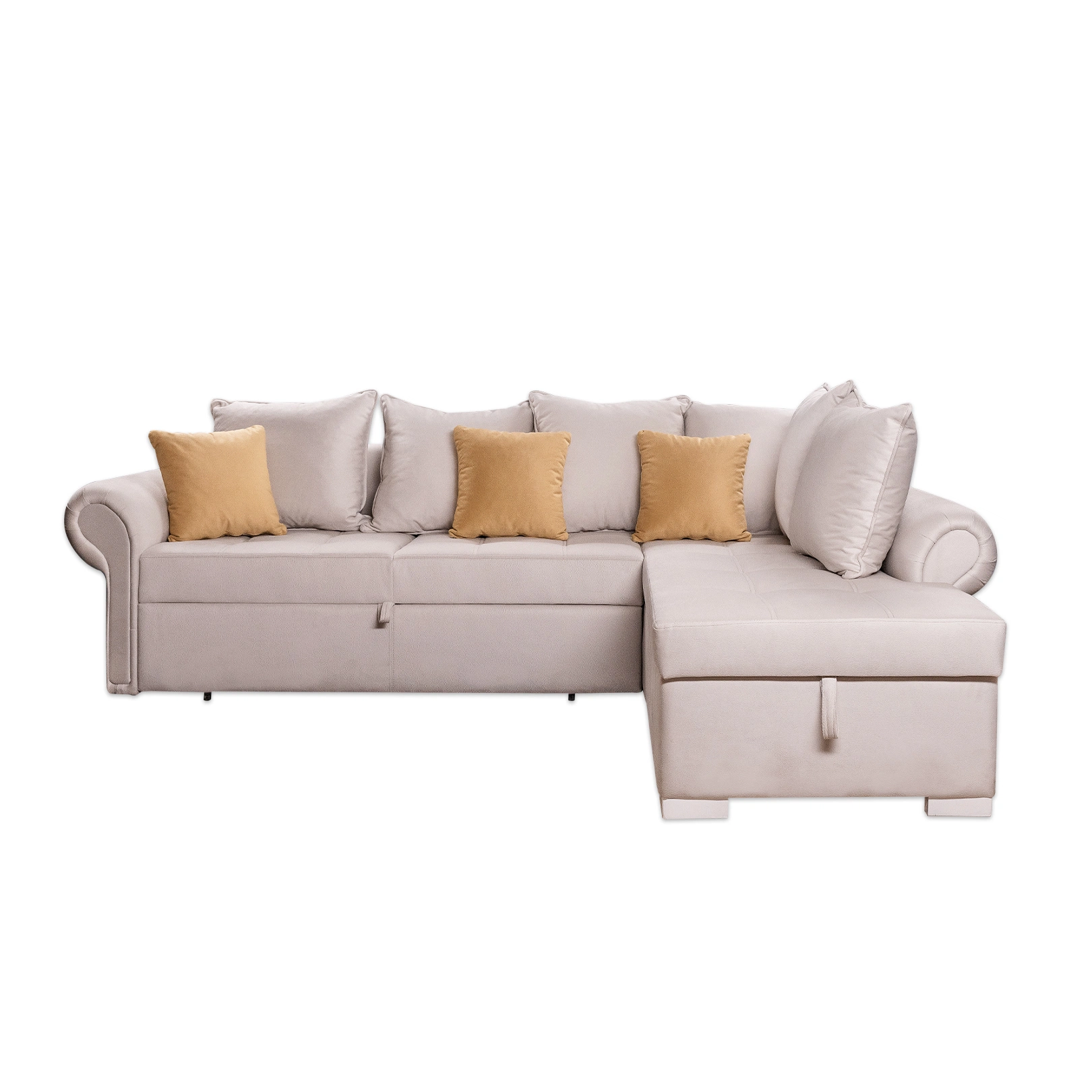 Ugaona garnitura Jana – Garnitura klasičnog dizajna. Postoji mogućnost kombinacije boja, dezena… Pogodna za korisnike koji žele tvrđi, čvršći sedeći deo, sedeći deo sunđer (gustina 30). Veliki izbor materijala. Drvena konstrukcija omogućava čvrstoću i dugotrajnost. Poseduje ostavu za odlaganje i fioku sa lift mehanizmom koji se rasklapa i dobijate ležaj za spavanje. U cenu garniture ulazi 6 velikih i 3 mala jastuka.