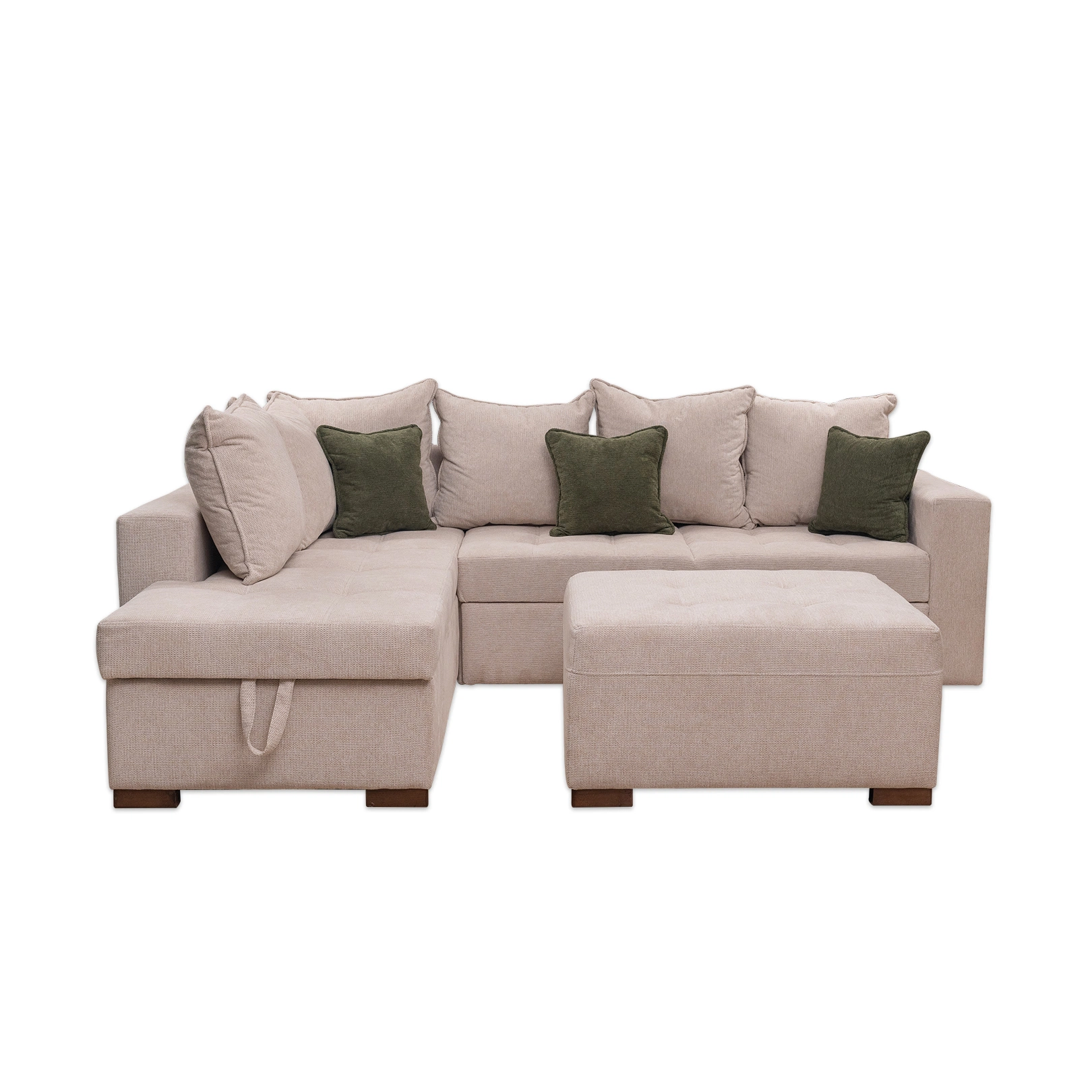 Garnitura modernog dizajna. Postoji mogućnost kombinacije boja, dezena… Pogodna za korisnike koji žele tvrđi, čvršći sedeći deo, sedeći deo sunđer (gustina 30). Veliki izbor materijala. Drvena konstrukcija omogućava čvrstoću i dugotrajnost. Poseduje ostavu za odlaganje i fioku sa lift mehanizmom koji se rasklapa i dobijate ležaj za spavanje.