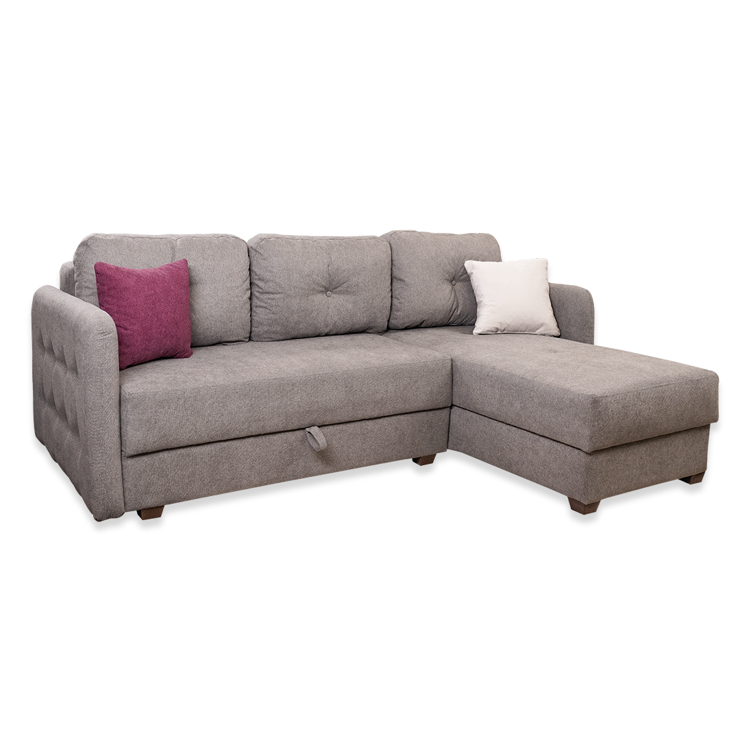 Ugaona garnitura Pikolo je mala, praktična i idealna za manje prostore. Poseduje funkciju razvlačenja za udobno spavanje, kao i prostor za odlaganje posteljine, što je čini savršenim rešenjem za funkcionalan dom.