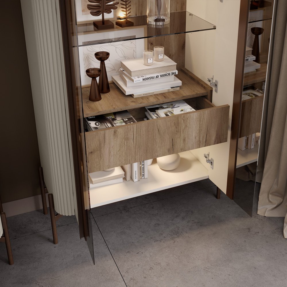 Dvokrilna vitrina za dnevnu sobu iz kolekcije RONDO sa parsol staklom.