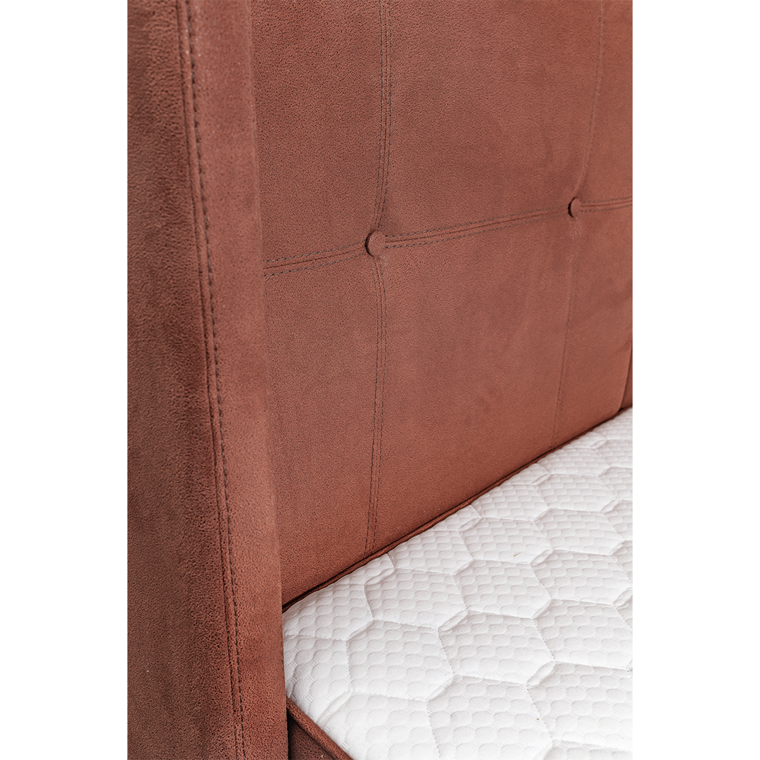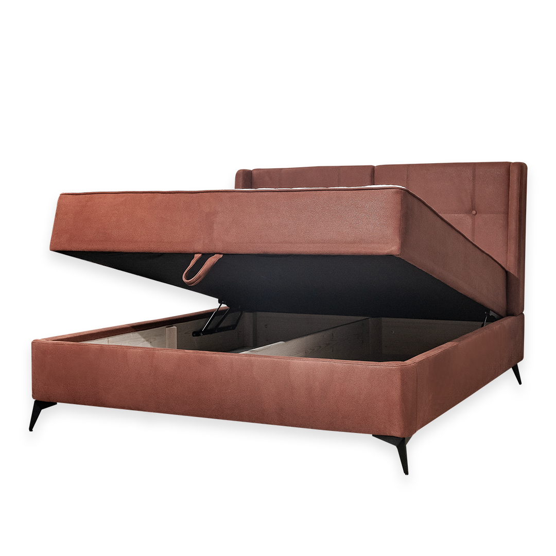 Ležaj modernog dizajna. Metalni nogari u crnoj i srebrnoj boji. Veoma udoban, deo za spavanje, žičano jezgro sa memory penom. Veliki izbor materijala. Drvena konstrukcija omogućava čvrstoću i dugotrajnost. Ležaj poseduje ostavu za odlaganje. U cenu uračunat dušek.