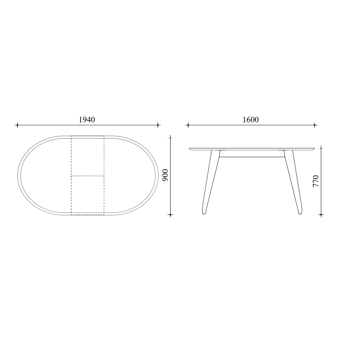 160 (200) x 90 x 77 cm |